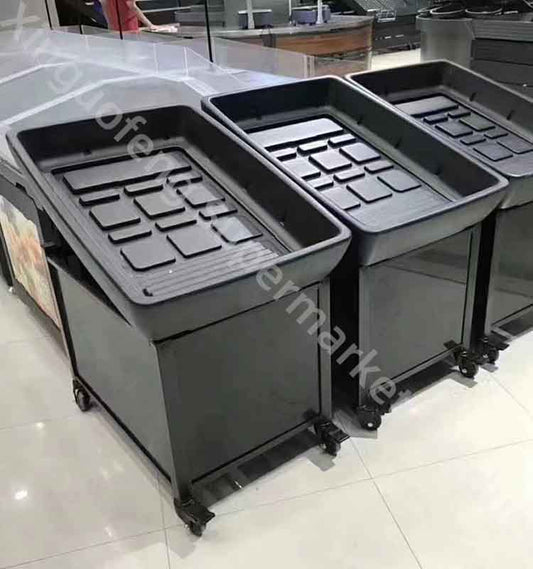 supermarket Ice truck Cold table refresh cart keep colder vegetables meat pork fruit storage black assemble mobile desk