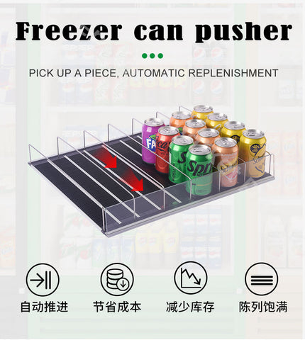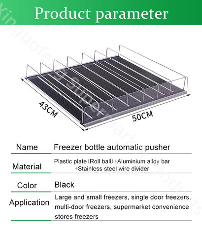 Tiltable Pushe automatic forward slide interlocking extendable Freezer Rack Adjustable Market Actylic Display black Pusher for bottles